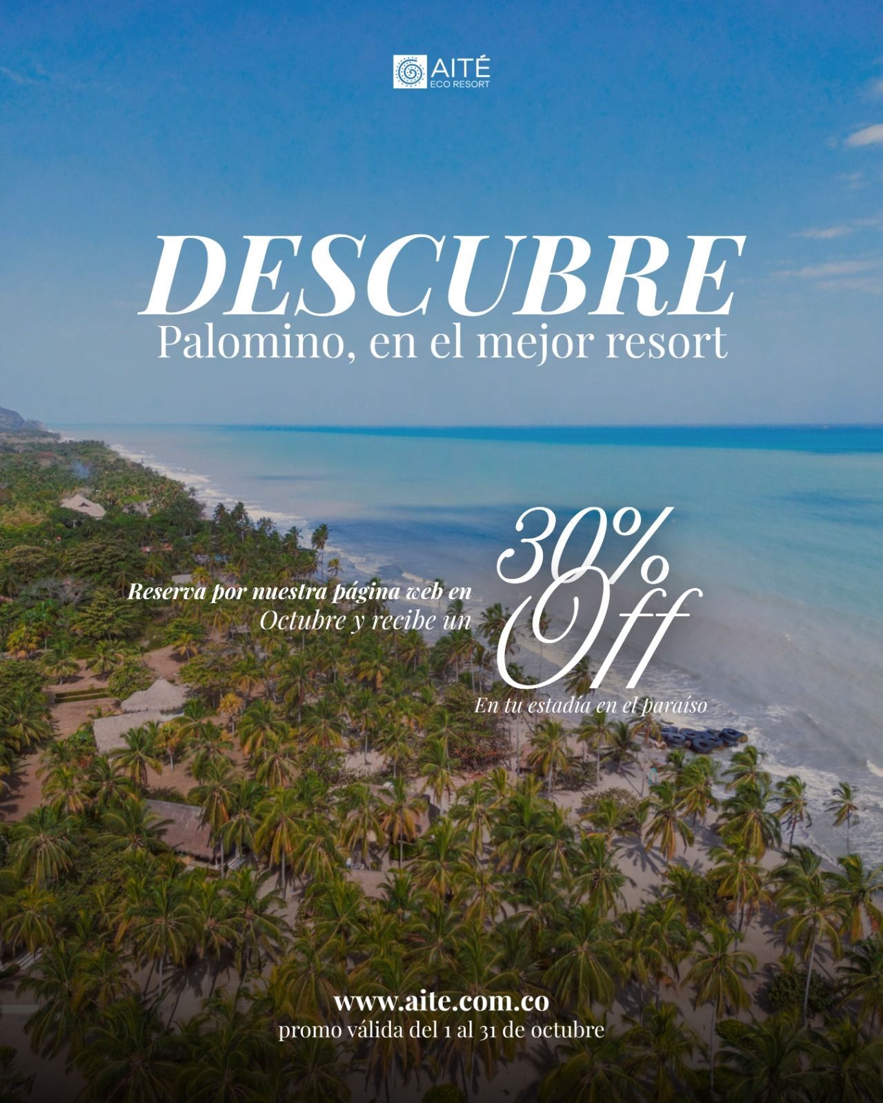 Genießen Sie diesen Oktober ein einzigartiges Erlebnis mit Blick auf die Karibik in Palomino, La Guajira. Buchen Sie Ihren Aufenthalt direkt auf unserer offiziellen Website und erhalten Sie 30 % Rabatt auf die Unterkunft.