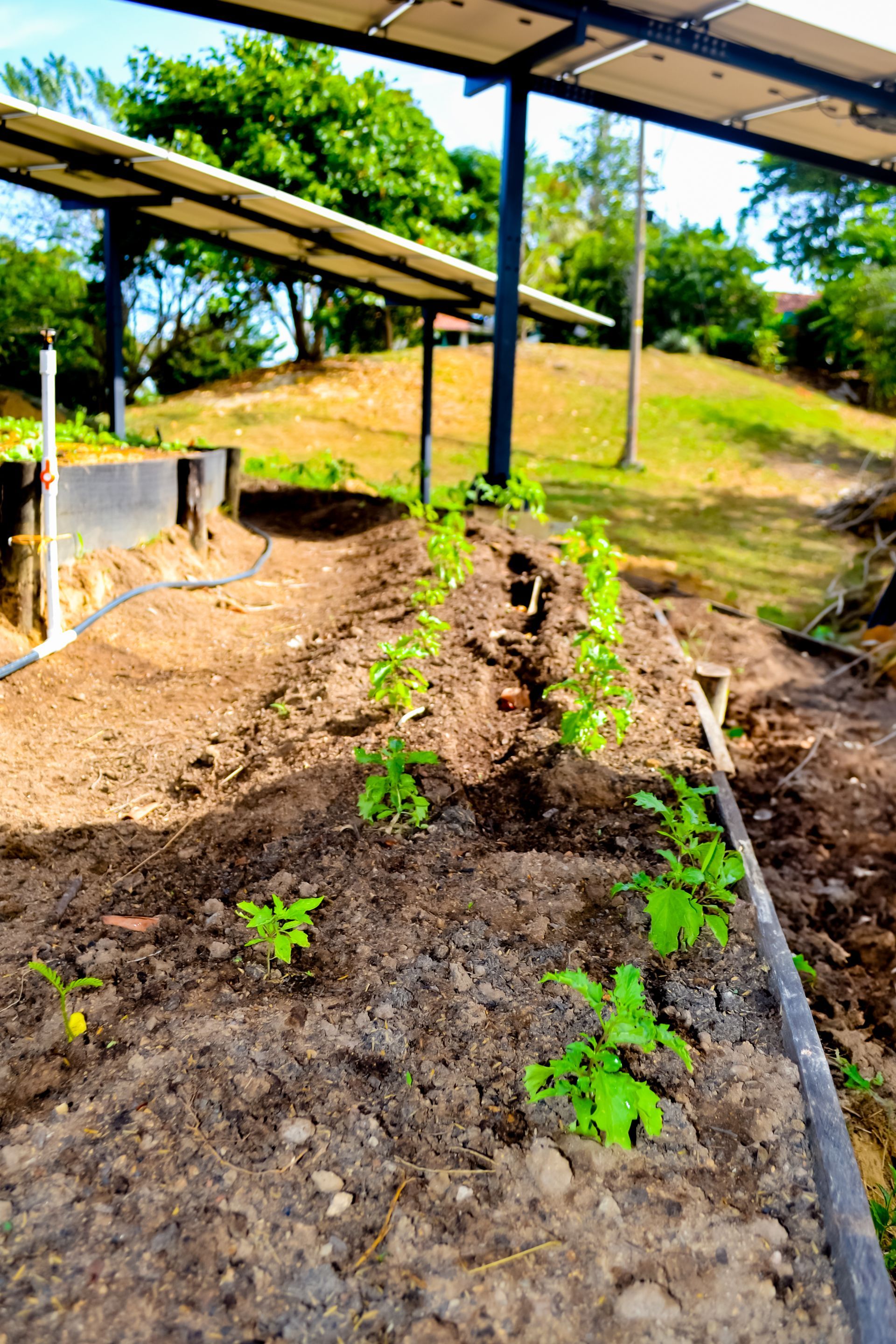 Im Schatten unserer Solarmodule wächst etwas Außergewöhnliches: ein Bio-Garten, in dem wir frische Zutaten für Ihren Tisch anbauen. Diese perfekte Symbiose ermöglicht es uns, Lebensmittel zu produzieren und gleichzeitig die Pflanzen vor der intensiven Mittagssonne zu schützen.